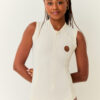 com recortes laterais, zíper de vislon frontal e um acabamento anatômico. .
