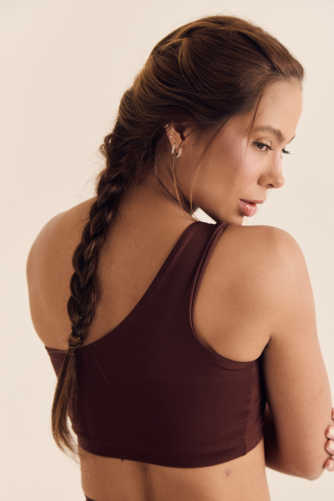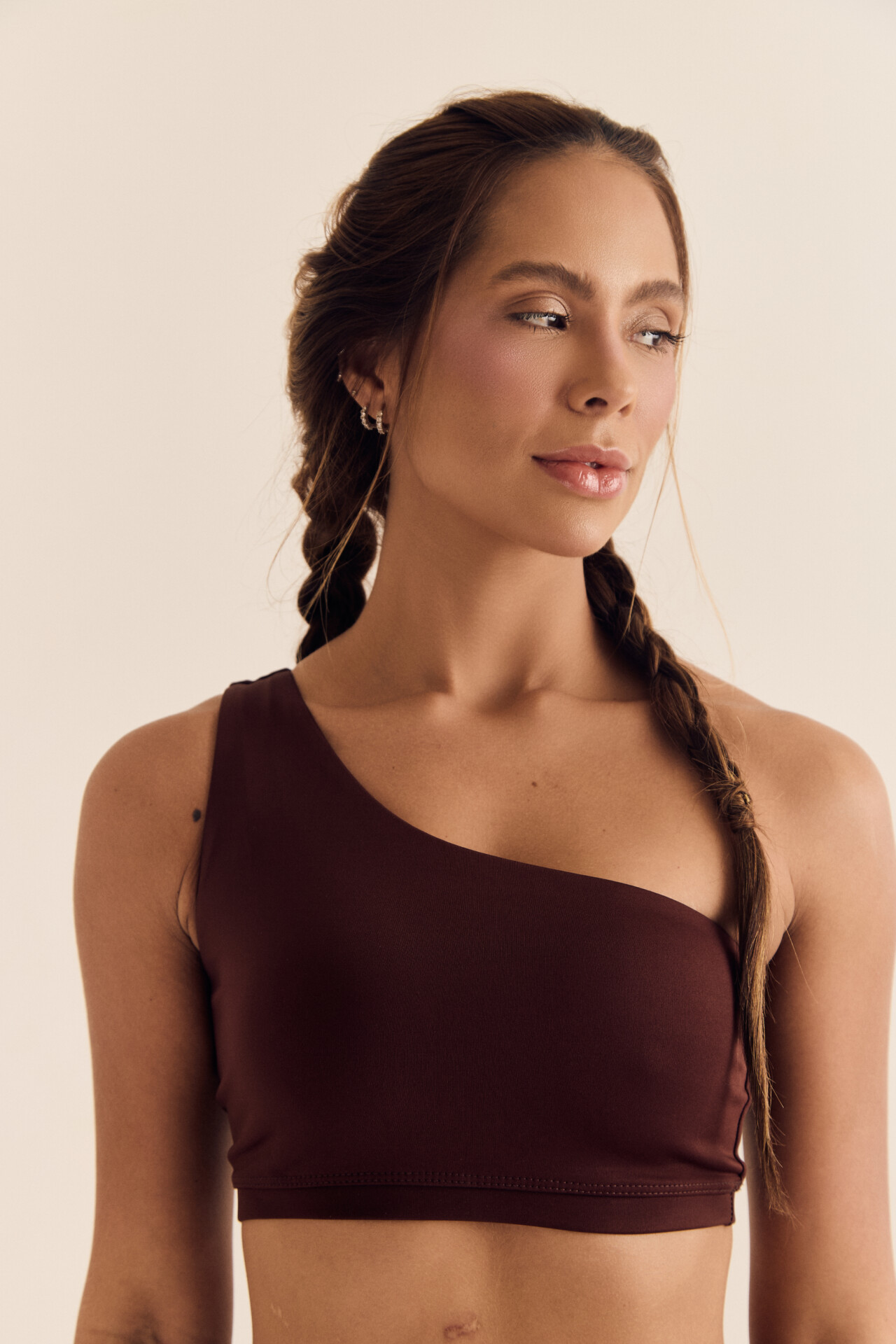 – ombro único com alça larga, garantindo sustentação